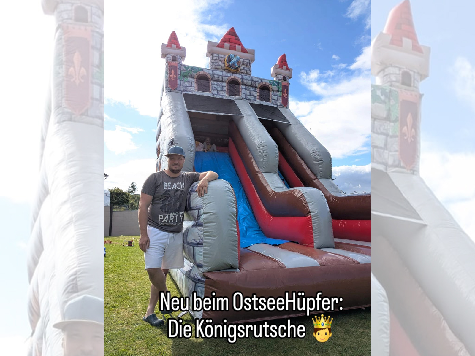 Unsere Hüpfburg ,,Ritterrutsche" bietet Platz für max. 10 Kinder und ist bei jedem Kindergeburtstag/Fest ein echter Hingucker. Durch das Ritter-Design und der hohen Rutsche verzaubert unsere ,,Ritterrutsche“ die Kinderaugen.